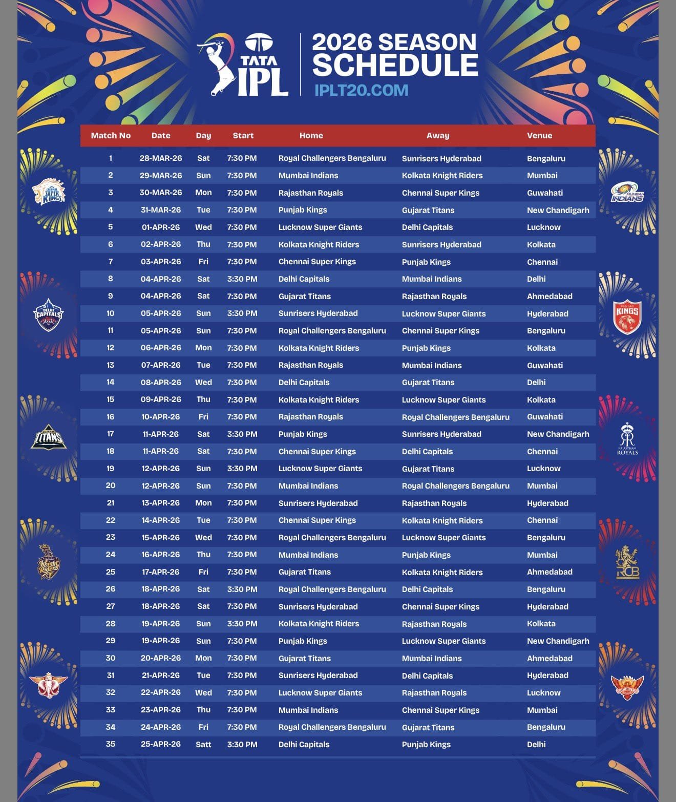 क्रिकेट फैंस के लिए बड़ी खुशखबरी सामने आई है। IPL 2026 के दूसरे शेड्यूल की घोषणा हो चुकी है, जिसमें छत्तीसगढ़ की राजधानी रायपुर को भी दो बड़े मुकाबलों की मेजबानी मिली है।