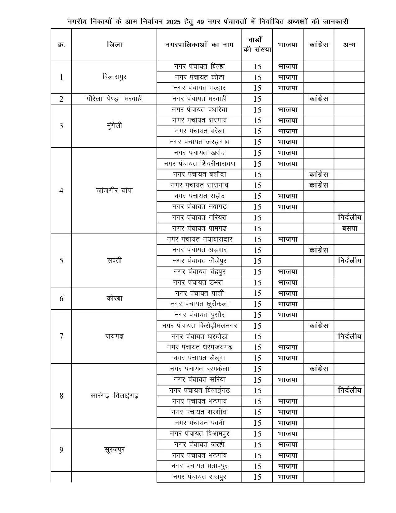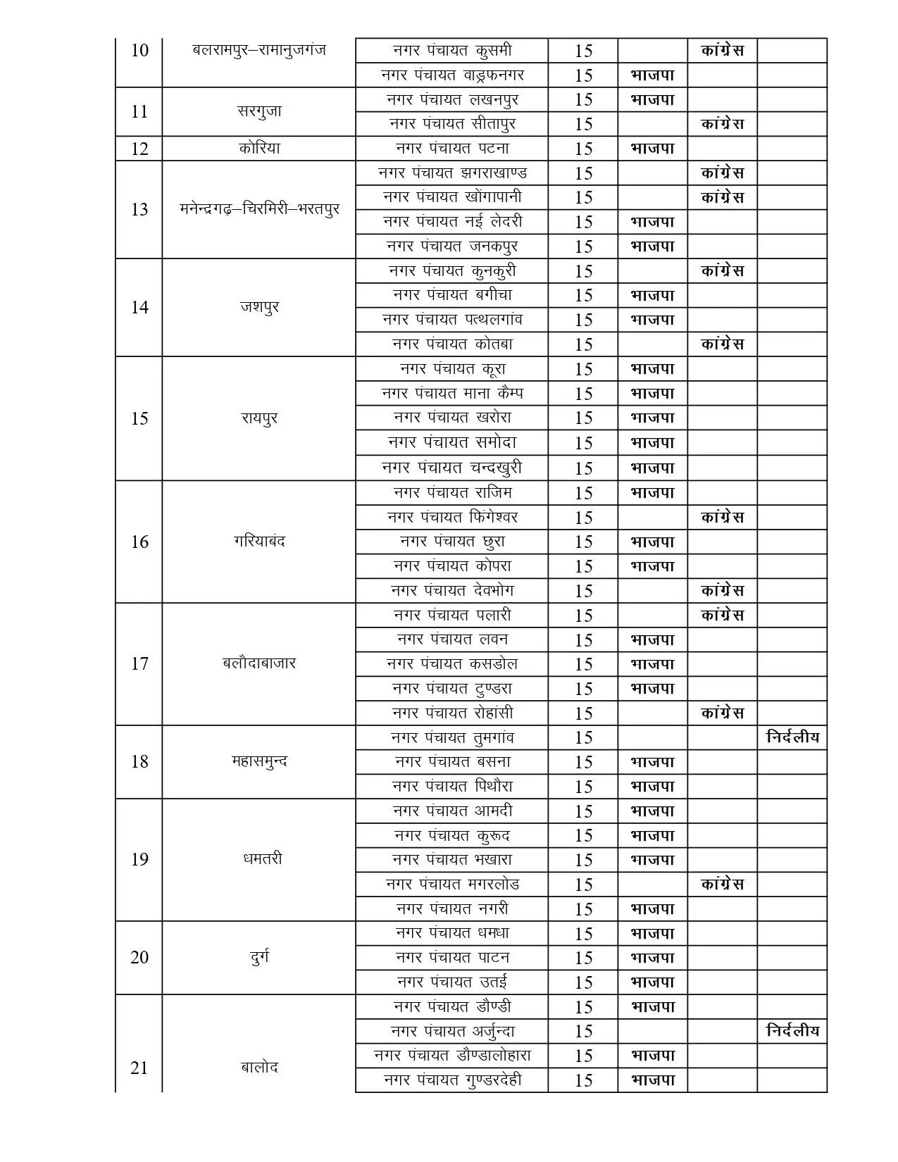 छत्तीसगढ़ के नगर पंचायत के परिणाम, देखें कौन कहा से जीता