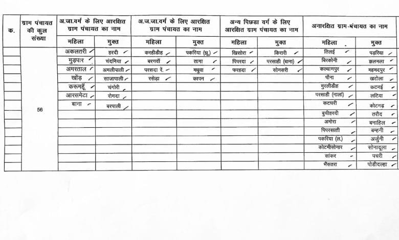 अकलतरा जनपद पंचायत के ग्राम पंचायत का आरक्षण प्रक्रिया हुआ सम्पन्न, देखें सूची